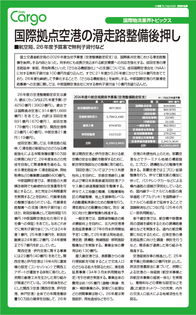 国際拠点空港の滑走路整備後押し