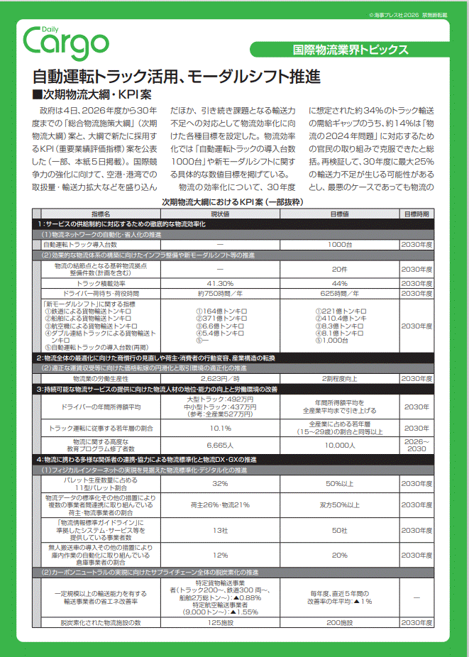自動運転トラック活用、モーダルシフト推進