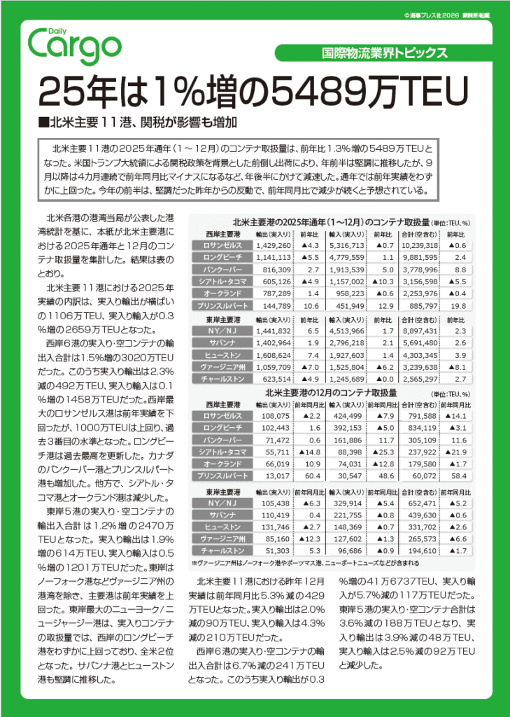 25年は1%増の5489万TEU