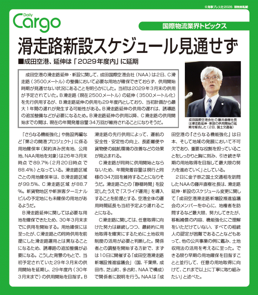 滑走路新設スケジュール見通せず